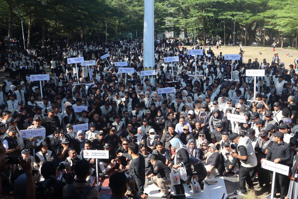 Diketahui ribuan peserta Apel Siaga ini terdiri dari anggota Bawaslu dan Panitia Pengawas Kecamatan (Panwascam) se-Sulsel, totalnya 1.000 orang lebih.