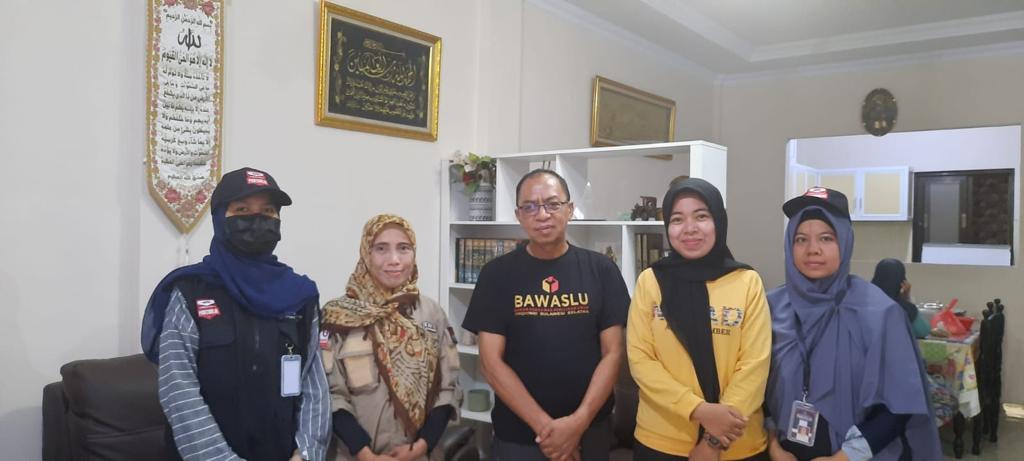 Keterangan Gambar: Ketua Bawaslu Sulsel H.L. Arumahi Sabtu (25/uploadsugas Pemutahiran Data Pemilih (Pantarlih) didampingi PKD Borong ketika melakukan Pencocokan dan Penelitian ( Coklit) untuk Pemilu 2024 di kediamannya Komplek Puri Taman Sari Borong, Kecamatan Manggala Makassar. Pelaksanaan Coklit serentak akan berlangsung hingga 14 Maret 2023 untuk memastikan kecocokan data pemilih Pemilu 2024.