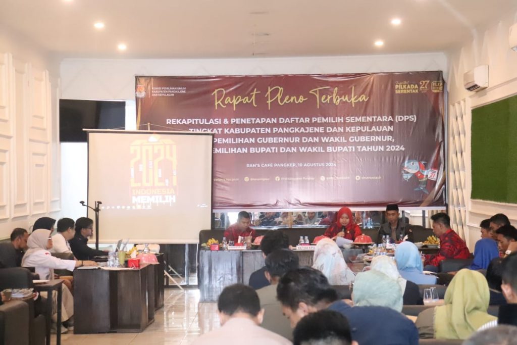 Hal itu disampaikan oleh Ketua KPU Kabupaten Pangkep Ichlas saat memimpin rapat pleno terbuka rekapitulasi dan penetapan daftar pemilih sementara, tingkat Kabupaten Pangkajene dan Kepulauan yang digelar di Rans Café, Jl. Terminal Baru, Bungoro (Sabtu, 10/08/2024).