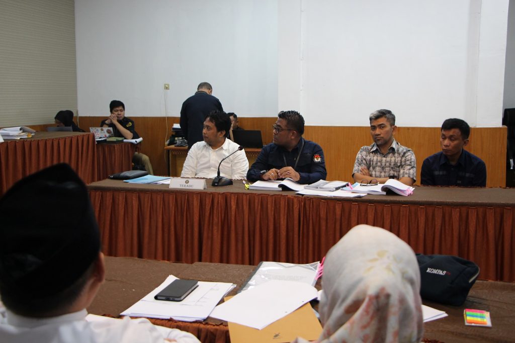 Mardiana Rusli dan Anggota Bawaslu Sulsel masing-masing Saiful Jihad, Alamsyah, Andarias Duma, Abdul Malik dan Adnan Jamal bergantian memberikan keterangan saat diminta oleh Ketua Majelis Sidang yang dipimpin oleh J. Kristiadi dan Anggota Majelis M. Iqbal Latief (TPD Prov. Sulsel unsur Masyarakat).