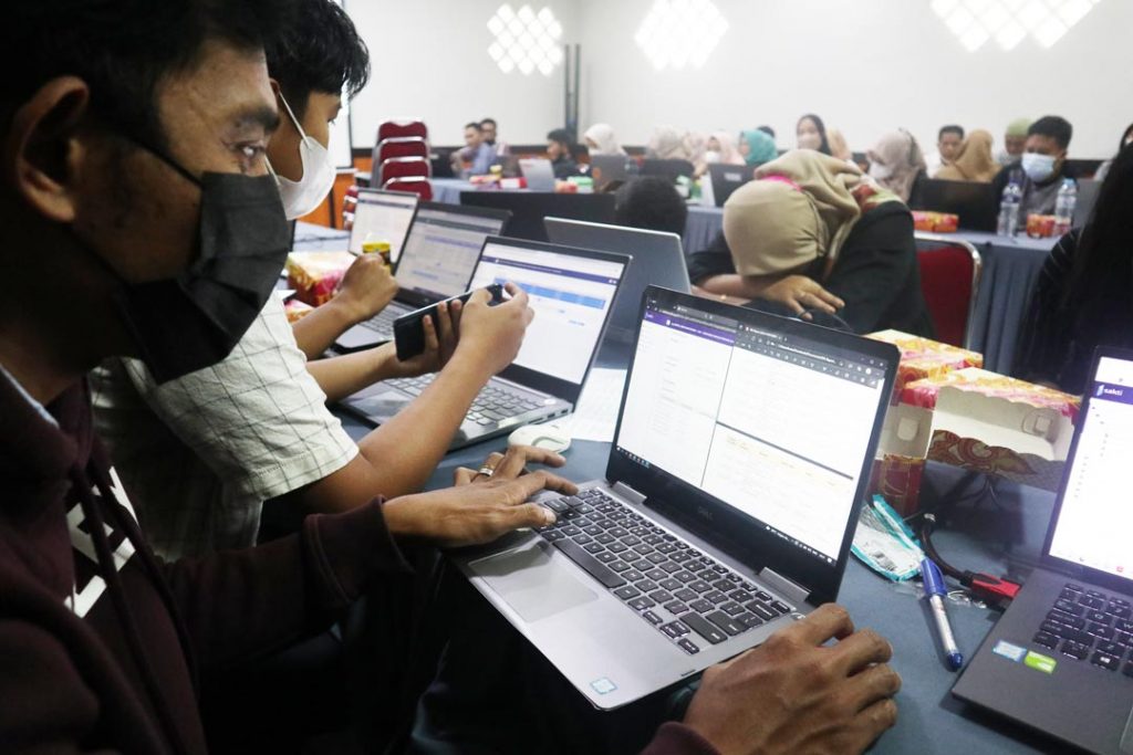 Staf operator Bawaslu Kabupaten/Kota se-Sulawesi Selatan mengaplikasikan langsung SAKTI, Jumat (4/2).
