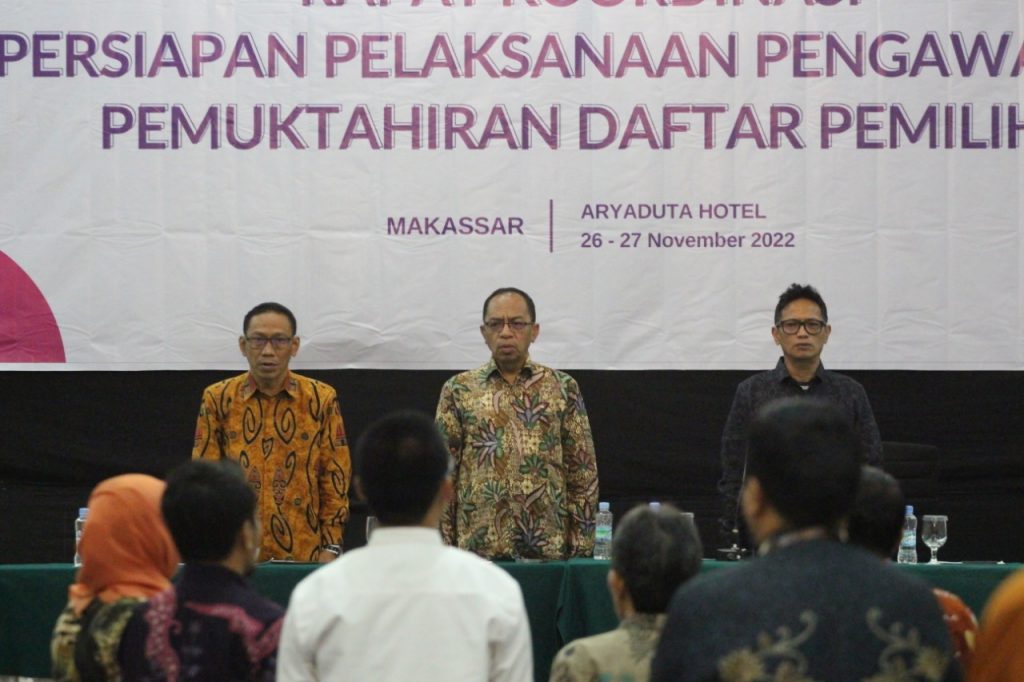 Makassar, Badan Pengawas Pemilihan Umum- Dalam rangka persiapan pengawasan tahapan pemutakhiran daftar pemilih, Bawaslu Provinsi Sulawesi Selatan mengumpulkan jajaran Bawaslu di 24 kabupaten dan kota dalam rapat koordinasi persiapan pelaksanaan pengawasan pemutakhiran daftar pemilih yang digelar di kota Makassar, Sabtu (26/11/2022).