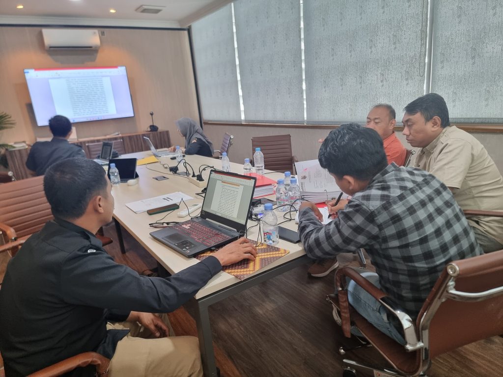 Keterangan Gambar : Anggota Bawaslu Sulawesi Selatan (Sulsel) Andarias Duma bersama staf bagian Hukum Bawaslu RI dan Sulsel saat melakukan review penyusunan keterangan di Sekretariat Jenderal Bawaslu RI, Jakarta, belum lama ini.