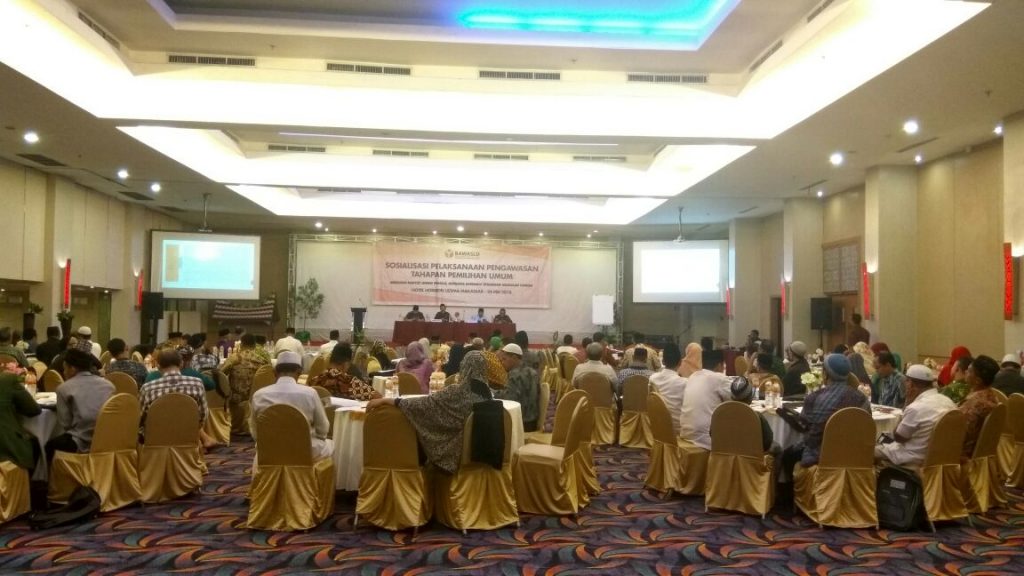 Makassar, Badan Pengawas Pemilu - Bawaslu Provinsi Sulawesi Selatan mengadakan Sosialisasi Pelaksanaan Pengawasan Tahapan Pemilihan Umum, Kamis (24/5) di Hotel Horison Ultima Makassar, Jalan Jenderal Sudirman No.24 Makassar.