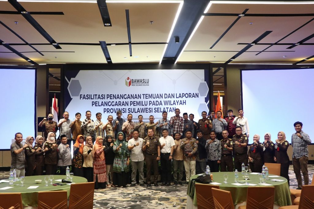Makassar, Badan Pengawas Pemilihan Umum- Bawaslu Provinsi Sulawesi Selatan menggelar rapat koordinasi Sentra Gakkumdu untuk meningkatkan kualitas kerja melalui Fasilitasi Penanganan Temuan dan Laporan Pelanggaran pada Pemilu Tahun 2024.