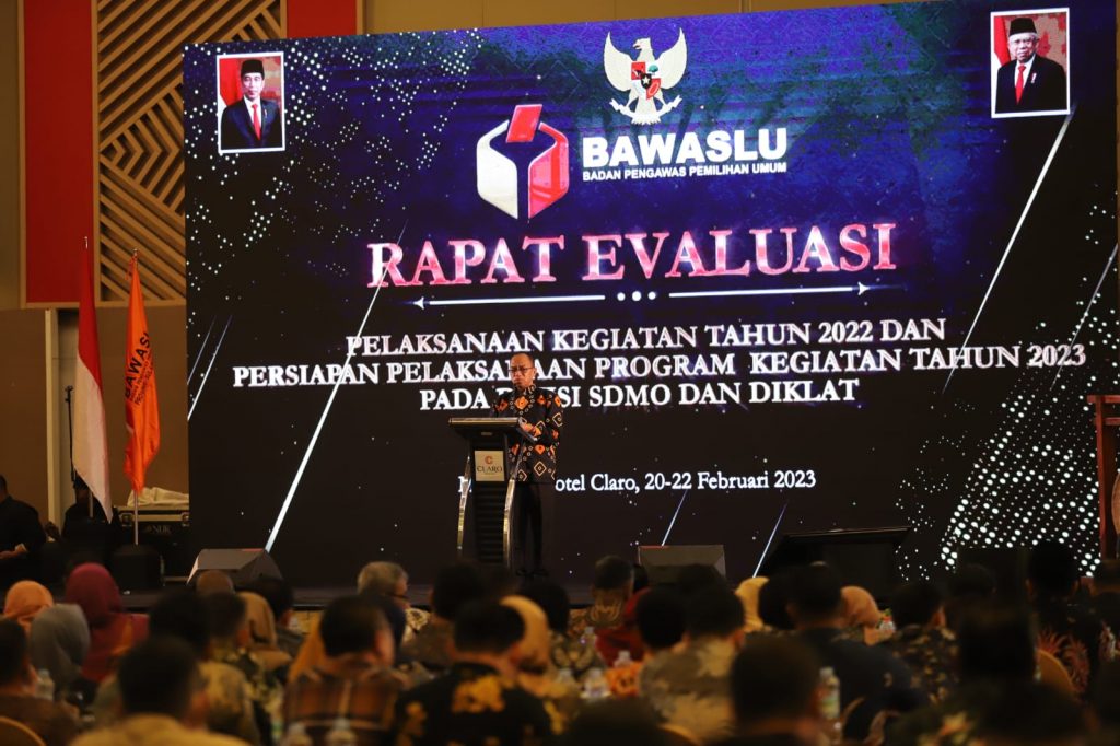 Rapat evaluasi itu dihadiri seluruh jajaran Ketua Bawaslu Provinsi, Ketua Bawaslu Kabupaten/Kota, Kepala Sekretariat Provinsi, dan anggota Bawaslu Divisi Sumber Daya Manusia, Organisasi, dan Diklat.