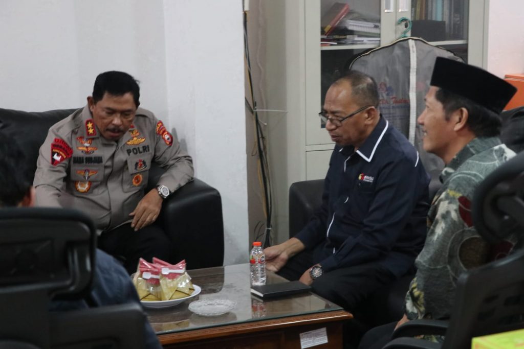Keterangan Gambar: Kapolda Sulsel Irjen Nana Sudjana saat berkunjung ke ruang Sentra Gakkumdu Bawaslu Provinsi Sulawesi Selatan. Tampak Ketua Bawaslu Sulsel didampingi Anggota Bawaslu Sulsel Saiful Jihad turut mendampingi, Jumat (3/2/2023)