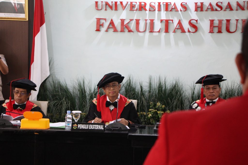 “Dihadapan khalayak ini, Bapak, saya ulangi "lamaran" saya. Saya melamar Bapak untuk berkenan menjadi dosen praktisi di Fakultas Hukum Universitas Hasanuddin. Mohon saya diberikan restunya, Pak. Biar kita mencetak pengabdian bersama,†ujar Prof. Hamzah Halim dalam sesi pembukaan kegiatan promosi doktor tersebut.