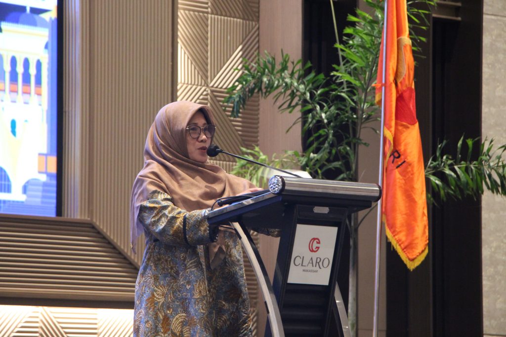 Keterangan Gambar : Anggota Bawaslu Puadi memberikan arahan saat membuka kegiatan rapat koordinasi nasional di Makassar, Selasa (16/9/2025).