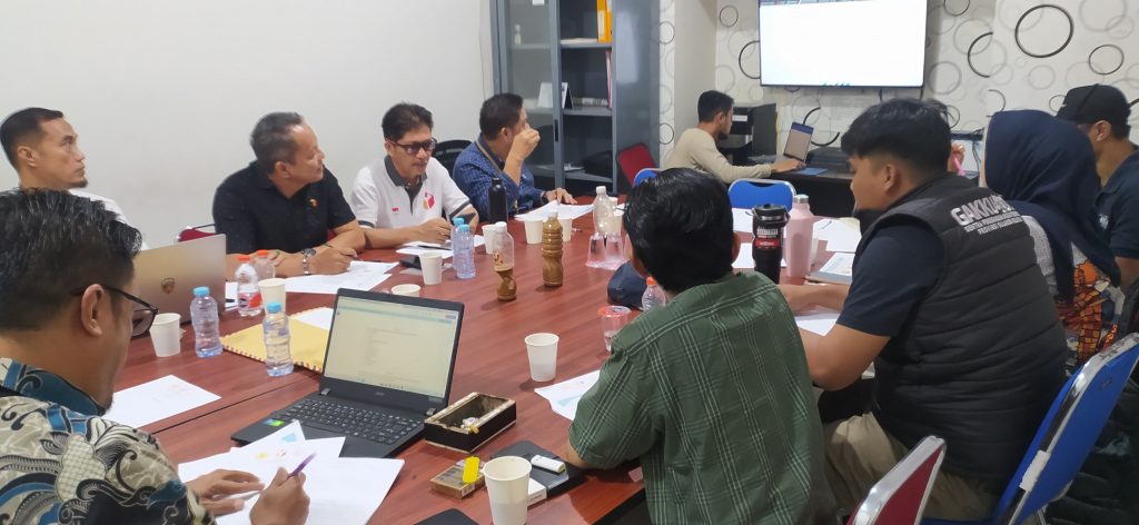 Keterangan Gambar: Tim Sentra Gakkumdu (Gabungan Penegakan Hukum Terpadu) Bawaslu Sulawesi Selatan melakukan rapat pembahasan kedua yang dihadiri oleh unsur Bawaslu, Kepolisian, dan Kejaksaan, di Makassar, Minggu (6/10/2024).